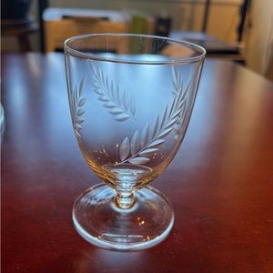 Seven Liqueur glasses with etched design. Beautiful delicate glasses for sipping a cordial.