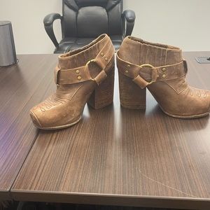 Beautiful brown leather solestruck boots - size 6 with 6 in block heel - super comfy