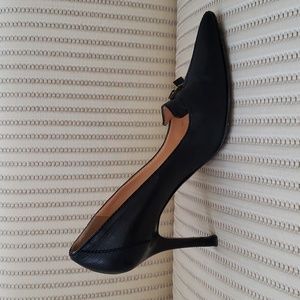 Gorgeous Louis Vuitton black leather pumps with LV cube charms. Very good pre-owned condition, it appears that one of the heels has been repaired, deeply discounted because of it. Size EU 37, should be equivalent to US 7, however keep in mind LV shoes typically run narrow and a half size small.