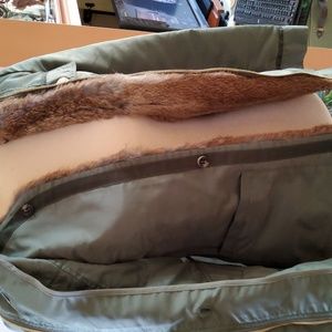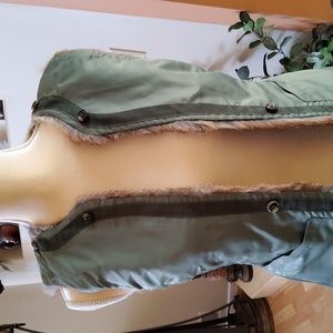 Tory Burch, Army Green Jacket with adjustable Vest. You can wear it all year around. Take off the vest and wear it in the Spring, as lightweight Jacket, or just the Vest . In the Winter add the vest and it's very warm. One of my favorite jackets, but unfortunately too small for me. Excellent condition!