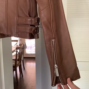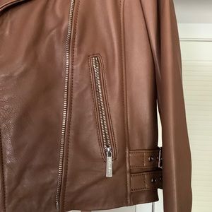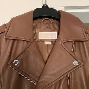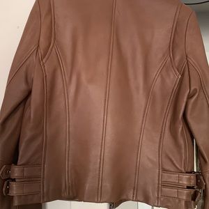 Michael Kors Genuine Leather Jacket Brown Size Small