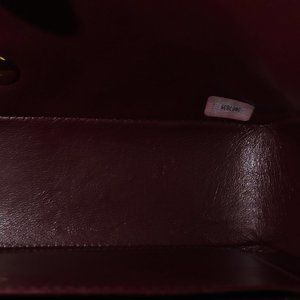 The exterior leather is clean and beautiful, corners and edges are clean. There are 2 light marks in the back. There are tiny fringes in leather strap. The interior has slight wrinkle from open/close. Hairline scratches on logo. The bag is considered pristine vintage condition.