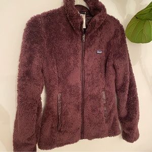 Patagonia Los Gatos full zip jacket in Light Balsamic (plum color purple). Fuzzy furry feel. Shiny lining. Pockets. Great preowned condition like new, NO FLAWS. Women’s size Xsmall.