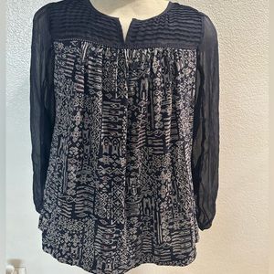 Lucky Brand Women’s Sheer Sleeve Boho Aztec Style Top