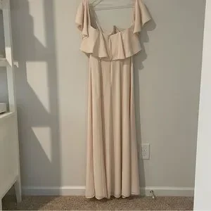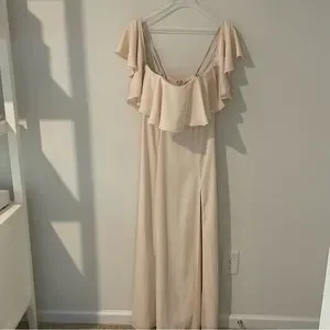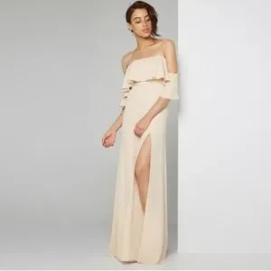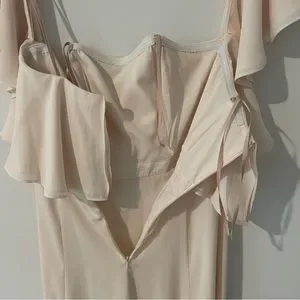Fame and Partners Cream Gown Off the Shoulder Fitted Waist Size M High Slit