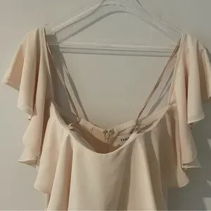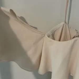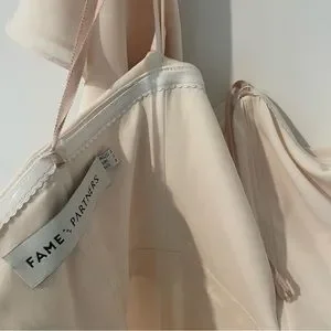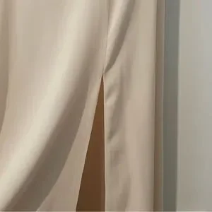 This Fame and Partners Cream Gown is the perfect dress for any special occasion. It's elegant and sophisticated, yet still sexy and fun. The off-the-shoulder neckline and fitted waist are flattering and feminine, while the floor-length skirt with a high slit is luxurious and flowing.