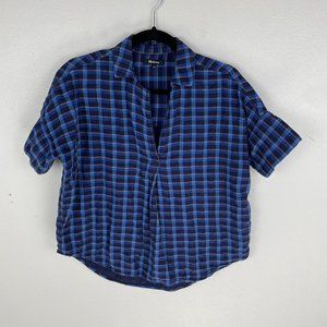 Madewell Double Faced Park Popover Shirt Womens Size S Blue Plaid Boxy Oversized