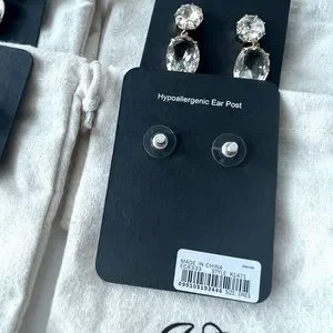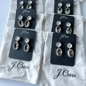 6 J. Crew “Diamond” drop earrings. Brand new with drawstring bags