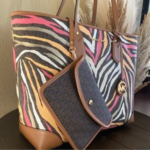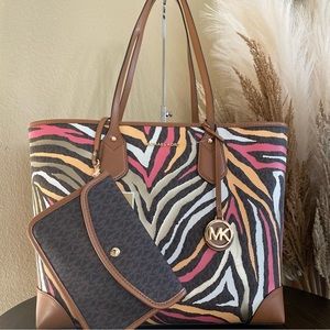 100% authentic brand new with tag Michael Kors zebra large Eva shoulder tote bag