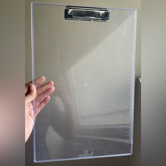 The transparent plastic board has a closure at the top to hold the drawing sheets and it’s mildly used but in good condition.
