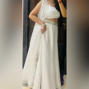 Brand-Aynaa, color-white satin lehenga,size-XL (customised)