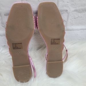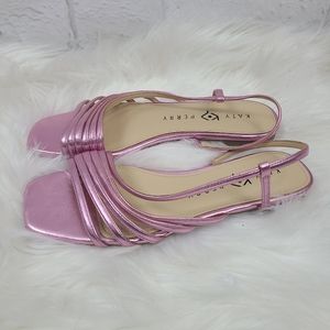 Katy Perry|La Perla Metallic Stappy Flat Sandal features metallic detail, sling back with elastic back strap, square toe