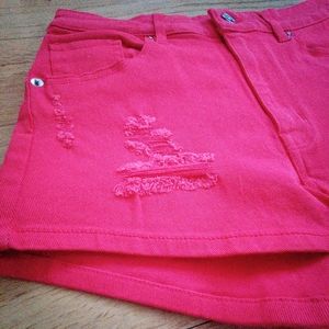 NWT H&M Red Distressed Denim High Waisted Shorts Women's Size 6