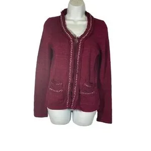 White House Black Market Cardigan Sweater Ruffle Chain Trim Hook And Eye Closure
