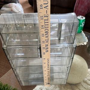 Turn your loose makeup and cosmetics into your very own beauty counter! This storage case is made of durable clear plastic so you can easily find what you need with style and function. Beautifully display your products in the bedroom, bathroom, vanity, dresser, counter.