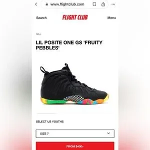 Dropping exclusively in grade-school sizing, the Lil Posite One ‘Fruity Pebbles’ pays tribute to sugary breakfast cereals, highlighted by a multi-color rubber outsole and a stylized cereal print on the midfoot shank. The vivid colors displayed across the shoe’s tooling is contrasted by a monochromatic black finish on the shoe’s synthetic Foamposite upper.