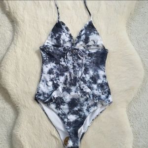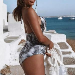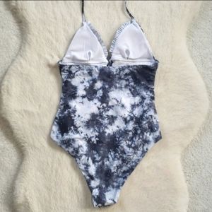New Tie Dye Lace-up Ruffle Trim One Piece Swimsuit