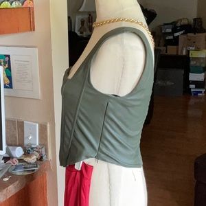7 for All Man Kind Olive Green Corset Faux Leather Top in Size M, NWT