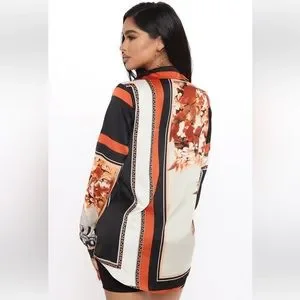Satin button down long sleeve shirt with collar. Oversized fit. 96% polyester 4% spandex