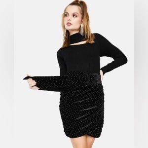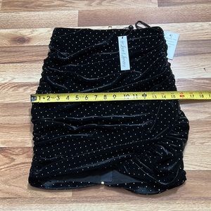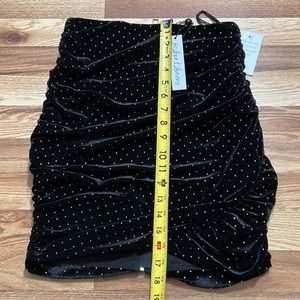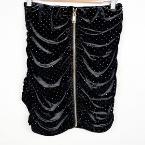 For Love and Lemons Dolls Kill Margot Black Velvet Gold Stud Ruched Mini Skirt