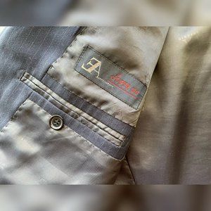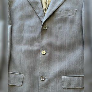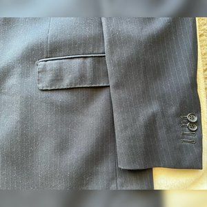 This is a men's Italian size 50 (40R US) blazer. It is dark navy blue with light gray stripes and three buttons. It has been gently worn, but is still in excellent condition. Thank you for shopping my closet!