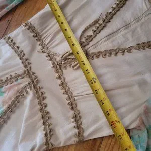No tag but I'd say it's a one-off gunne. Seems to be cotton or linen
