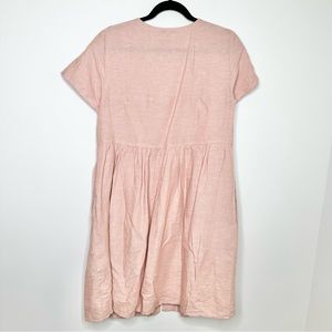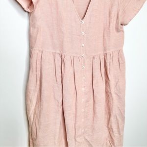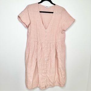 Madewell V-Neck Button Front Linen Blend Minidress in Warm Thistle Pink Size Small