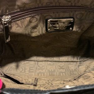 Simple & Elegant bag by one of my personal favorite designers, Salvatore Ferragamo! Ferragamo symbol-charm hanging from bag. Has a beautiful metallic shine. In excellent preowned condition, minor signs of wear. Please zoom in on photos as they are part of the description.