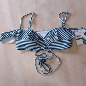 Isabella Rose Avalon Off the Shoulder Bikini Top in Green White Stripe