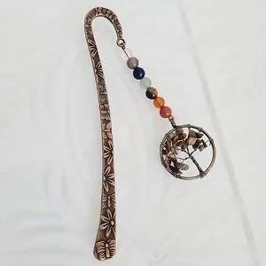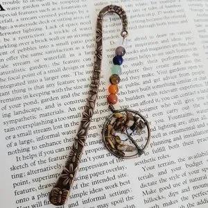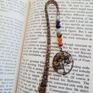 Beautiful bookmark made with the 7 chakra gemstones and a tigers eye gemstone in a tree of life circle