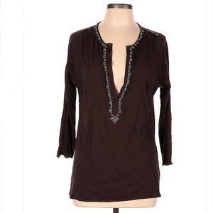 J.crew Brown Beaded Long Sleeve Tunic Top Size L