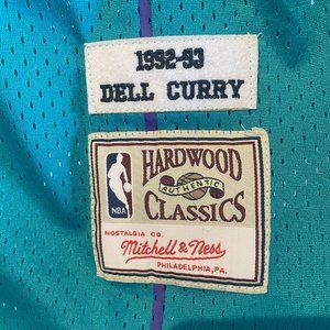 A mint condition Mitchell & Ness Hardwood Classics Dell Curry Charlotte Hornets jersey, size L.