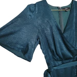Lulus Wrapped Up In Love Dark Green Satin Faux-Wrap Midi Dress Sz S