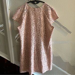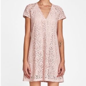 Zara Lace Pink Vee neck short-sleeve Dress Size Large. Pull on style.
