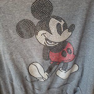 From Disney Parks. Size small. Worn only twice. Approximately waist-length in the front, a couple of inches lower in the back. Beaded/sparkle applique of Mickey Mouse on the front. Boat neck. Heathered blue/grey color. Machine washable, just turn inside out.