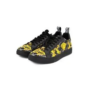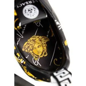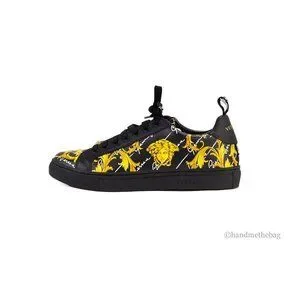 Style: Versace Low Top St. Barocco Print Sneakers - Features: Lace Up Closure, Signature Print Design, Color Black/Gold