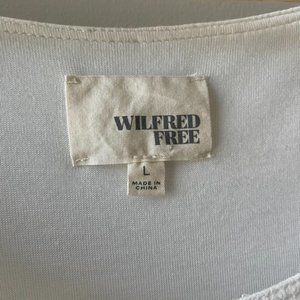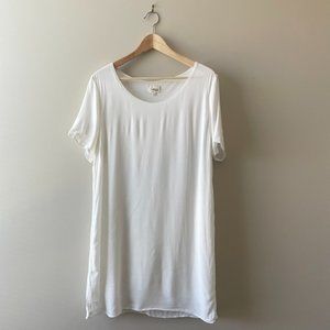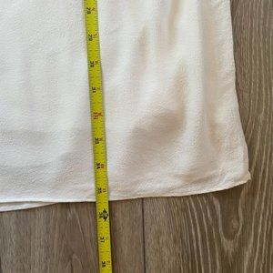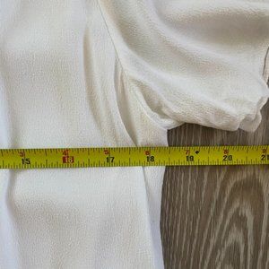 The outer layer of this dress is a crepe-like material, made from rayon. the inside liner is a soft and made from viscose. No stains, still in excellent condition. Just looking to rotate out of my closet. Perfect little dress for the summer that is an easy first layer. Size L. See photos for measurements and details