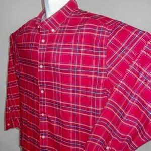 Saint Johns Bay Easy Care Men's Red Plaid Long Sleeve Button Down Shirt Size XXL