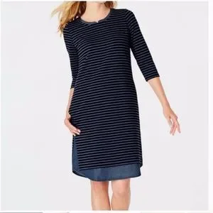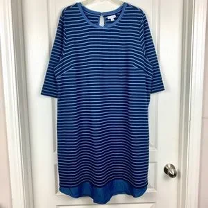J.Jill Striped Mixed Media Chambray Shirttail Shift Tunic Dress