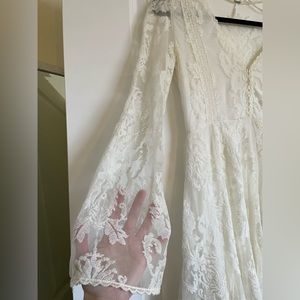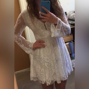 Free People Long Sleeve Lace Dress in White