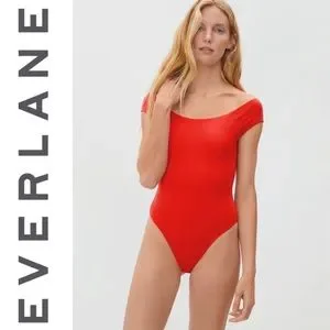 EVERLANE The Off the Shoulder Bodysuit In Scarlet Red NWT Thong M