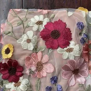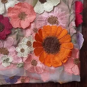 Raw hem on the bottom is part of the design. Layout of flowers on each dress varies slightly based on how the fabric was cut. Gorgeous 3 D design with flowers sticking out of the fabric. This is a boutique unbranded item.