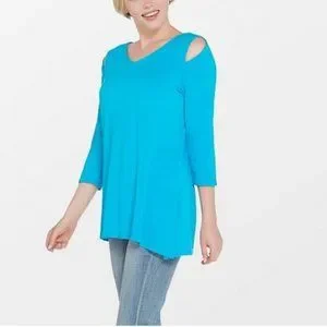 Belle by Kim Gravel Knit Top with Asymmetrical Hem