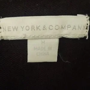 This is a New York & Company size M belted black sweater dress. The light weight and stops above the knee.