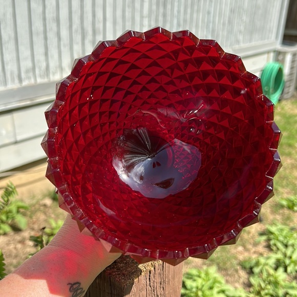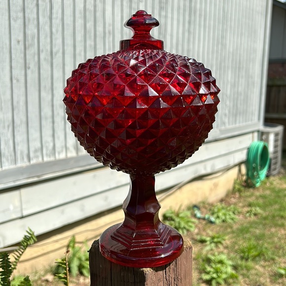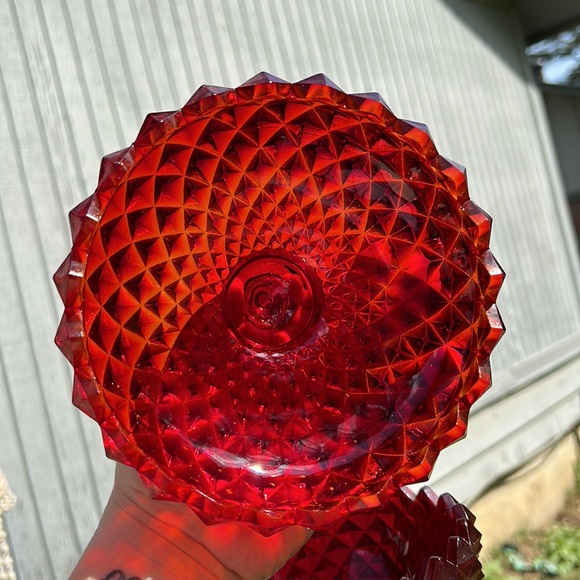 Vintage Westmoreland Ruby Red Glass Sawtooth Pattern Covered Compote GLOWS