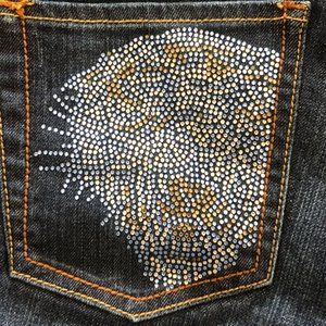 Ed Hardy by Christina Audigier Jeans, worn once, like new, size 32 x 32 embellished with rhinestones on rear pockets. Edgy, fun, classy and elegant all in one! Gorgeous jeans, wonderful jean weight, and super soft. Jeans are in perfect, like new condition.