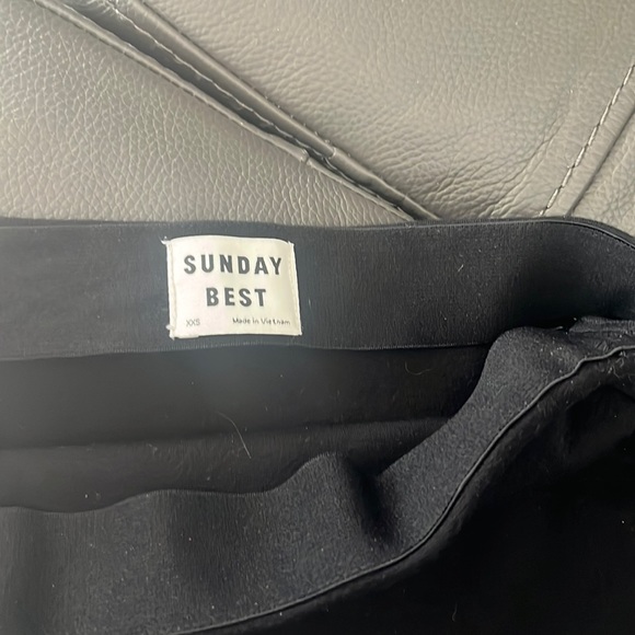 This is a pull-on, faux-wrap mini skirt with an asymmetric front