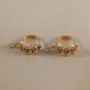 18K Yellow Gold Filled Olive Green Diamond Zircon Hoop Dangle Earrings
