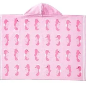 NEW Pottery Barn Kids Beach Hooded Towel in Pink Seahorse Icon Pattern with UPF 50+ sun protection.