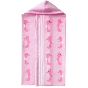 Pottery Barn Baby Beach Hooded Towel Pink Seahorse Icon UPF 50 Pool Vacation NWT